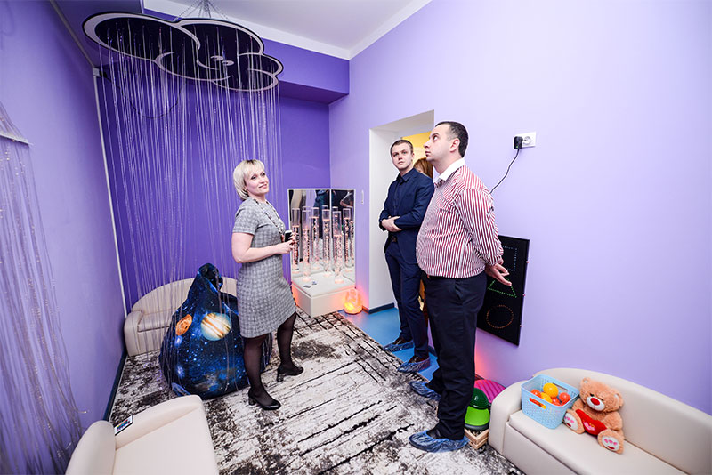 После концерта руководители нашей компании посмотрели, какую жизнь вдохнули в стены садика уже сами педагоги, заглянули в сенсорный кабинет, с удовольствиемпоиграли в интерактивной песочнице и кабинете робототехники.