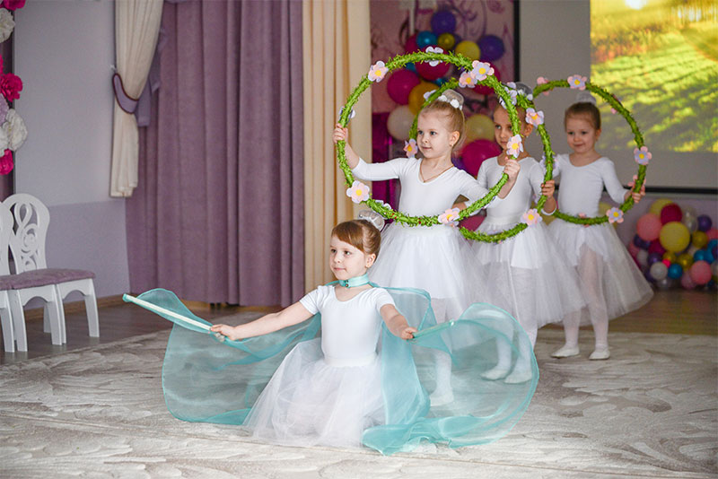 Действительно, заходя внутрь, сразу видишь, что попал в какую-товолшебную страну: коридорное пространство стилизовано, стены расписаныи декорированы объемными цветами.Дети продемонстрировали гостям, чему научились в детском саду за этиполгода – спели, станцевали, показали свои красивые костюмы и сценки. Апредставители компании поздравили детей с днем детской книги (визит былприурочен именно к этой дате) и подарили соответствующие полезныеподарки.