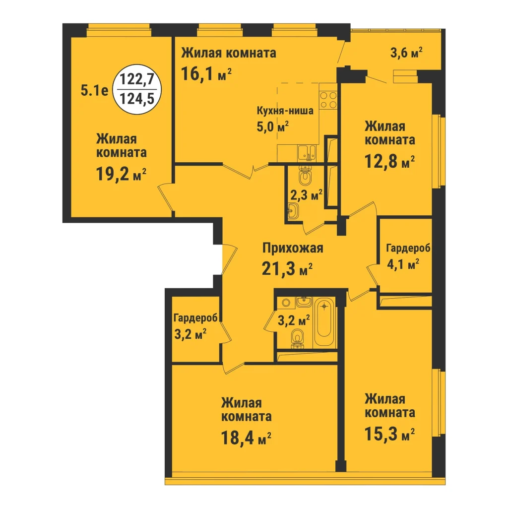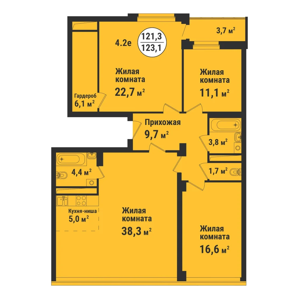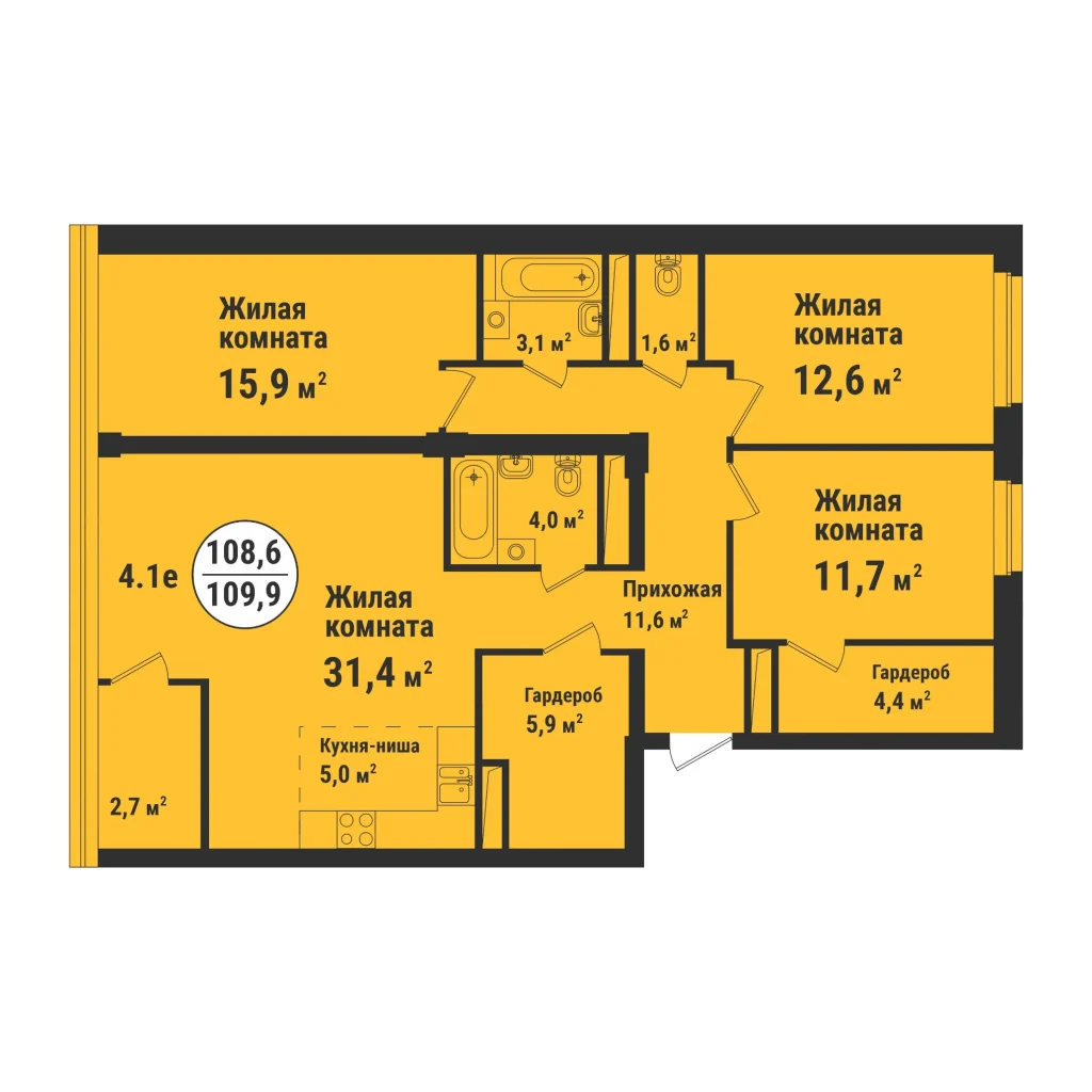 Для самых больших семей созданы четырёхкомнатные квартиры: с несколькими ванными, кухней-гостиной, террасой. Они обеспечивают личное пространство каждому и позволяют удобно зонировать помещения для работы и отдыха.