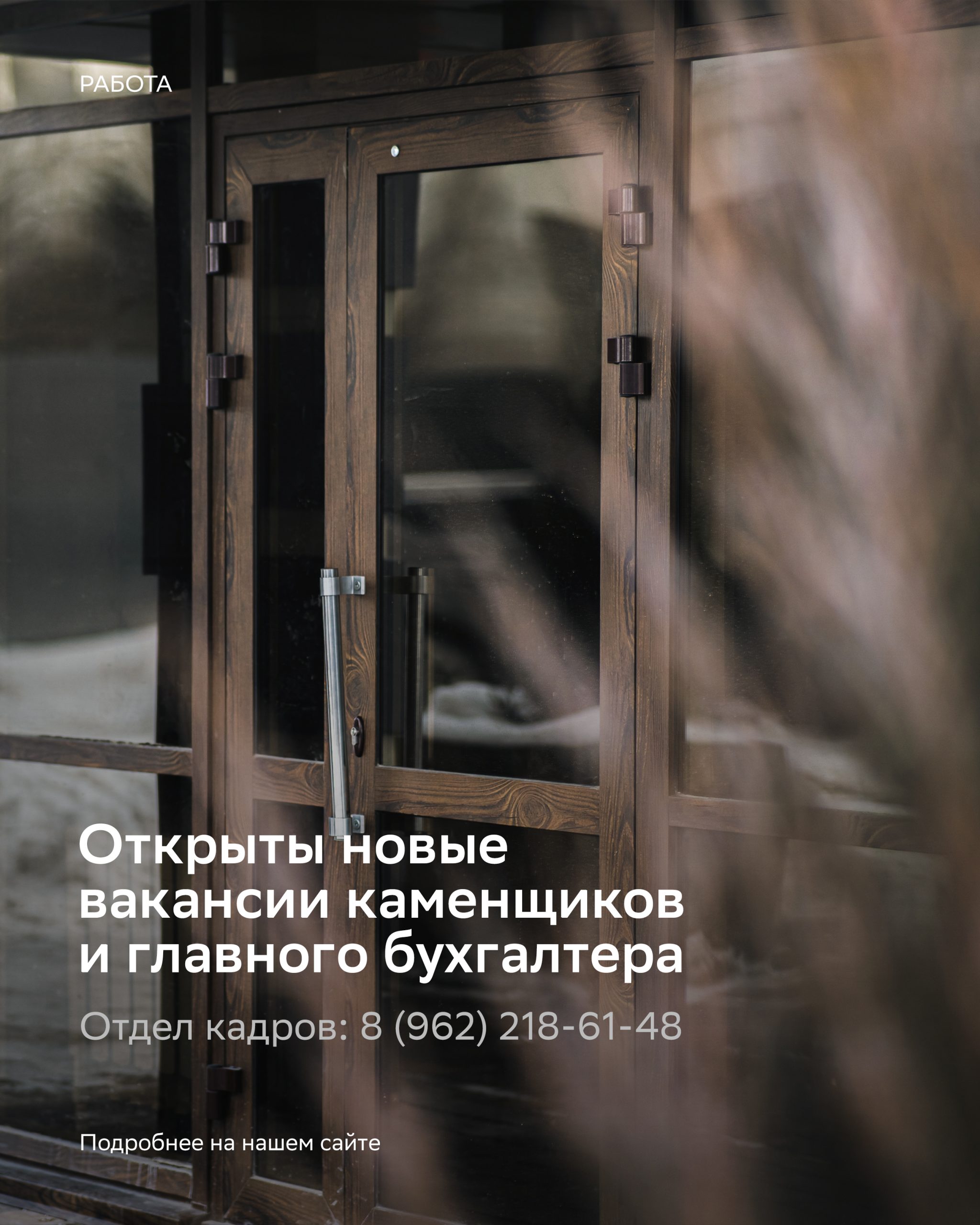 Наша компания находится в поиске ответственных каменщиков и опытного главного бухгалтера. Для отклика и отправки анкеты можете использовать телефон отдела кадров: +7 (962) 218-61-48 и электронную почту: hr@stag.sk-zhupikov.com