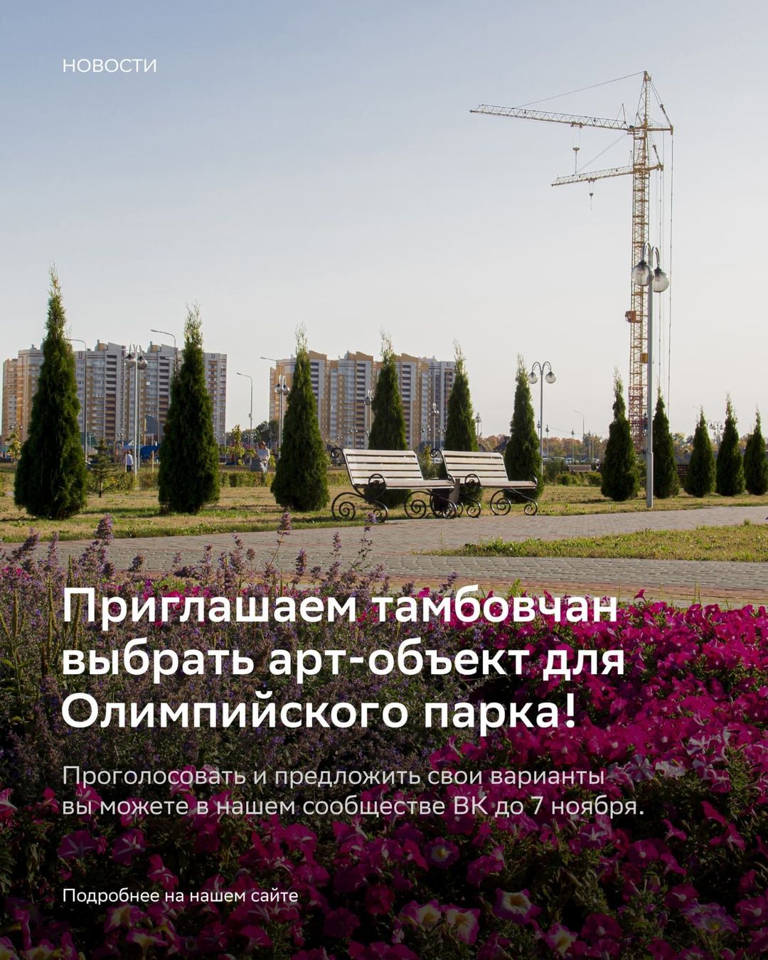 Логичным завершением благоустройства парка станет установка памятного арт-объекта. А чтобы определиться с его обликом, нам очень важно услышать мнение самих жителей Тамбова и гостей города. Голосуйте сами и приглашайте друзей! Опрос завершится 7 ноября. Голосование доступно в нашем сообществе ВК.https://vk.com/skzhupikov?w=wall-138185414_913