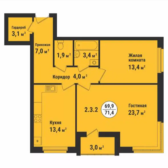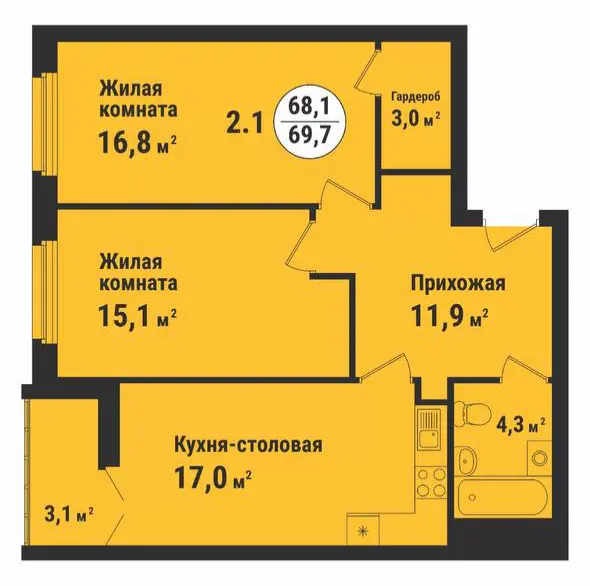 2-комн. от 69 м²